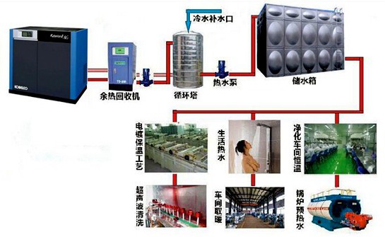 该项目为空压机余热回收并提供整套解决方案,通过与溴化锂吸收式冷(温)水机组合理搭配,并形成适合空压机系统节能的余热利用系统,实现提高能源效率、降低污染物排放的目的。解决空压机余热回收,同时满足夏季制冷冬季供暖需求,可为企业带来巨大经济效益,同时实现节能减排社会效益。
