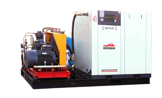 鉴于此,吹瓶行业定制空压机客户找到了德斯兰压缩机,希望能提供螺杆增压的解决方案。根据客户的实际使用需求,德斯兰为客户量身定制了7.5立方,25公斤的螺杆增压一体机。