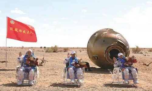 2022年4月16日9时56分,神舟十三号载人飞船返回舱在东风着陆场预定区域成功着陆,神舟十三号三名航天员安全顺利出舱。至此,中国空间站关键技术验证阶段收官之战取得圆满成功!