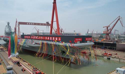 我国第三艘航空母舰下水命名仪式17日上午在中国船舶集团有限公司江南造船厂举行。中共中央政治局委员、中央军委副主席许其亮出席仪式。