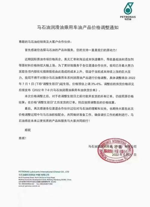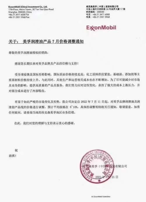 近期,壳牌、美孚、GS、昆仑、长城等多家润滑油企业发布价格调整通知: