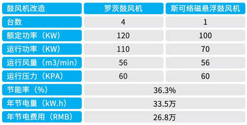 斯可络充分了解电厂客户需求,安排专业技术人员和销售人员前往现场进行实地勘查,通过专业工具实测原有设备数据,为客户定制了1台SCR125CB磁悬浮离心鼓风机替代原有4台罗茨风机节能降耗改造方案。
