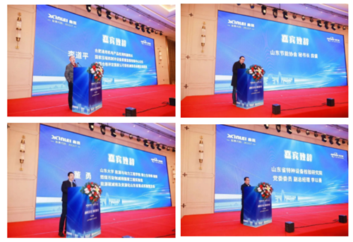 扬帆“启”航,共赴“鑫”程,在与会嘉宾及代表的共同见证下,中启节能总经理曹华、鑫磊股份董事长钟仁志、合肥通用机电产品检测院 副院长李道平、中国特检院、山东节能协会会长赵培建、国舜集团党总支书记吕和武、山东大学能源与动力工程学院博士生导师董勇教授、山东省特种设备检验研究院党委委员副总经理李以善共同推杆,山东节能服务中心在济南正式成立。