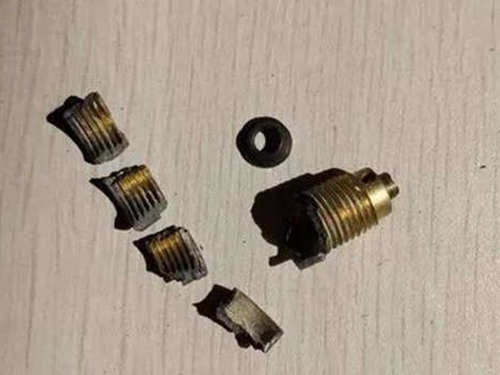 3.泄水阀,材质不是一般的烂,大家看图片,想放水,竟然酥了,各位想想啥材质能拧酥。