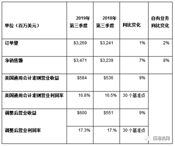 订单量增长11%,销售额增长10%。自有业务订单量和自有业务销售额持平。小型电动汽车、压缩技术和服务的自有业务订单量增长良好,但被短周期投资支出疲软造成的短周期设备订单量疲软所抵消。