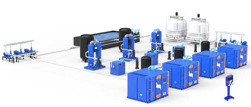 此次空压站升级项目通过实施能源管理,纺纱高压用气部分由青岛泰能达机电设备有限公司采用9台鑫磊股份双级双永磁变频空压机替换了原有进口空压机 。
