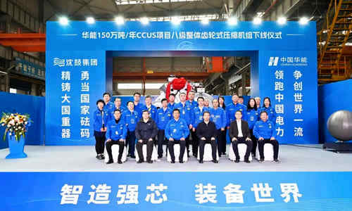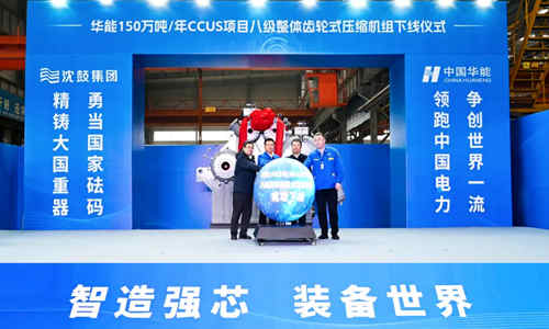 11月15日上午,华能150万吨/年CCUS项目八级整体齿轮式压缩机组下线仪式在沈鼓集团总装车间举行。中国华能集团有限公司科技部主任许世森,中国华能集团清洁能源技术研究院有限公司副总工程师郜时旺、温室气体部主任刘练波,沈鼓集团党委书记、董事长兼CEO戴继双等领导嘉宾出席下线仪式。沈鼓集团副总裁、首席技术官张勇主持下线仪式。
