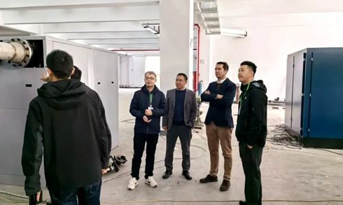 在访问过程中,盖亚公司邹总与客户蒋总带阿特拉斯科普柯集团副总裁Kris Leunckens一行参观了纽曼泰克品牌冷干机、吸干机、变频冷干机等众多产品,介绍了该厂整个生产工艺流程与压缩空气品质等应用。