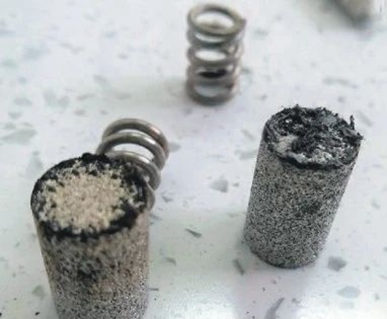 解体一级排气过滤器,取出过滤器芯,过滤器芯堵塞比较严重,如图所示。