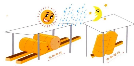 若由于不可抗原因必须存放于室外时,就应采取一些预防措施,将不良的后果降至最低: