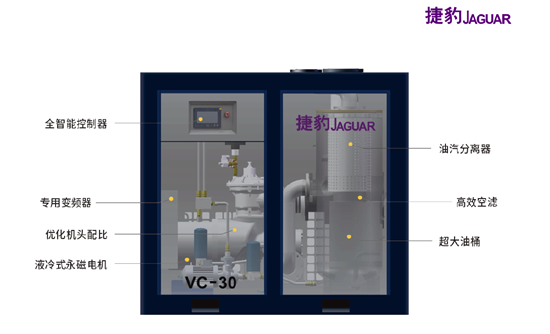 近年来,随着真空技术应用领域的不断扩大,各种真空获得设备增长非常迅速。老产品不断更新,新产品不断出现,真空设备已经进入一个新的时代。捷豹永磁螺杆机新推出——捷豹永磁螺杆机真空泵VC系列,大幅度降低用户使用成本,全面提升用户体验!