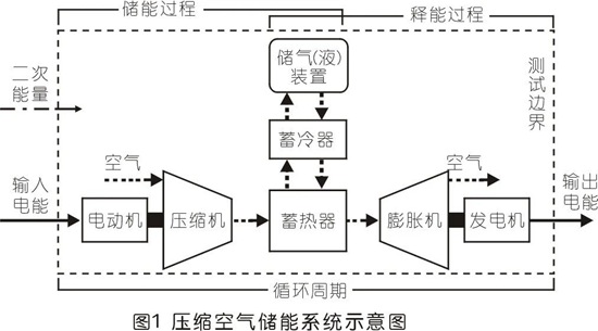 压缩空气储能系统是指以压缩空气为储能载体,主要用于可循环电能存储、释放的系统。一般包括电动机、压缩机、换热器、蓄热器、储气(液)装置、膨胀机、发电机、控制系统及相关辅助设备。