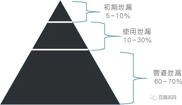 压缩空气是极其宝贵的优质能源,不仅在压缩空气转换效率(根据测算,其热效率仅为19.9%)、输送效率低,而且费用比较昂贵,减不压缩空气泄漏,有很大的经济效益。