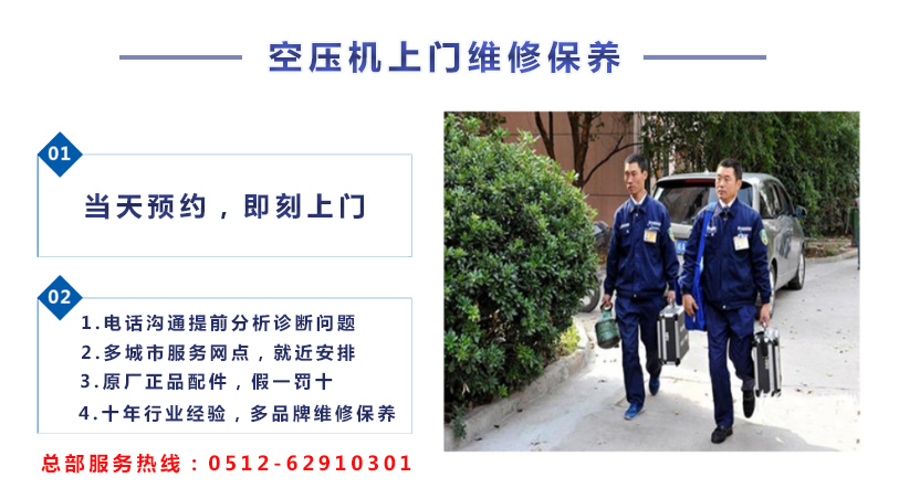 不管您的空压机是何种品牌,有任何问题,都可以直接在线或者电话咨询我们,我们会让离您最近的服务网点(我们在江苏、上海、浙江有多个办事处)售后人员和您联系!总部热线:0512-62910301