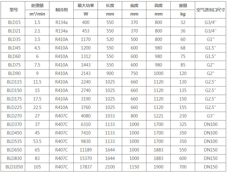 l 进气压力:BLD15-225/BLR13-260:13bar ;BLD270-1050:10bar