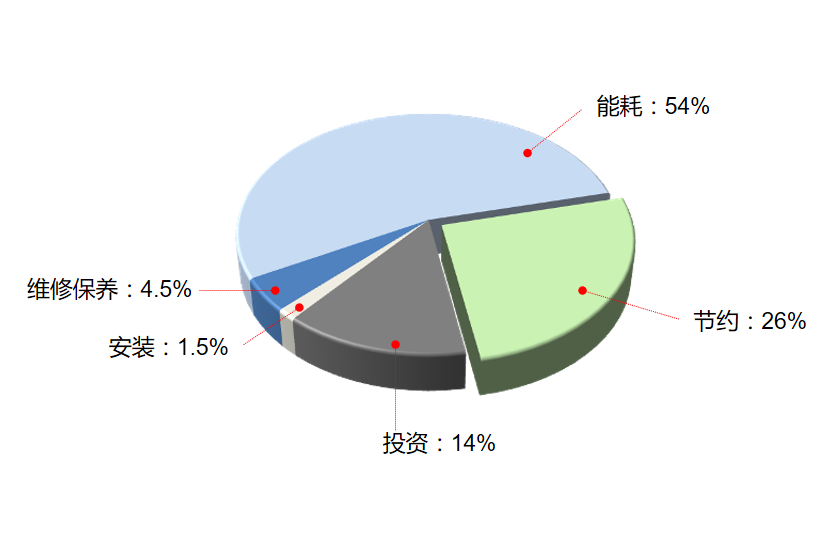 空压机能耗费用一般要占到使用周期整体费用的82%左右,空气压缩机的电费可能高达工厂全部电费的40%以上。长期的跟踪研究证明,大部分用户的压缩空气需求在不同日期、不同时间或不同月份都有40-80%的大幅波动。